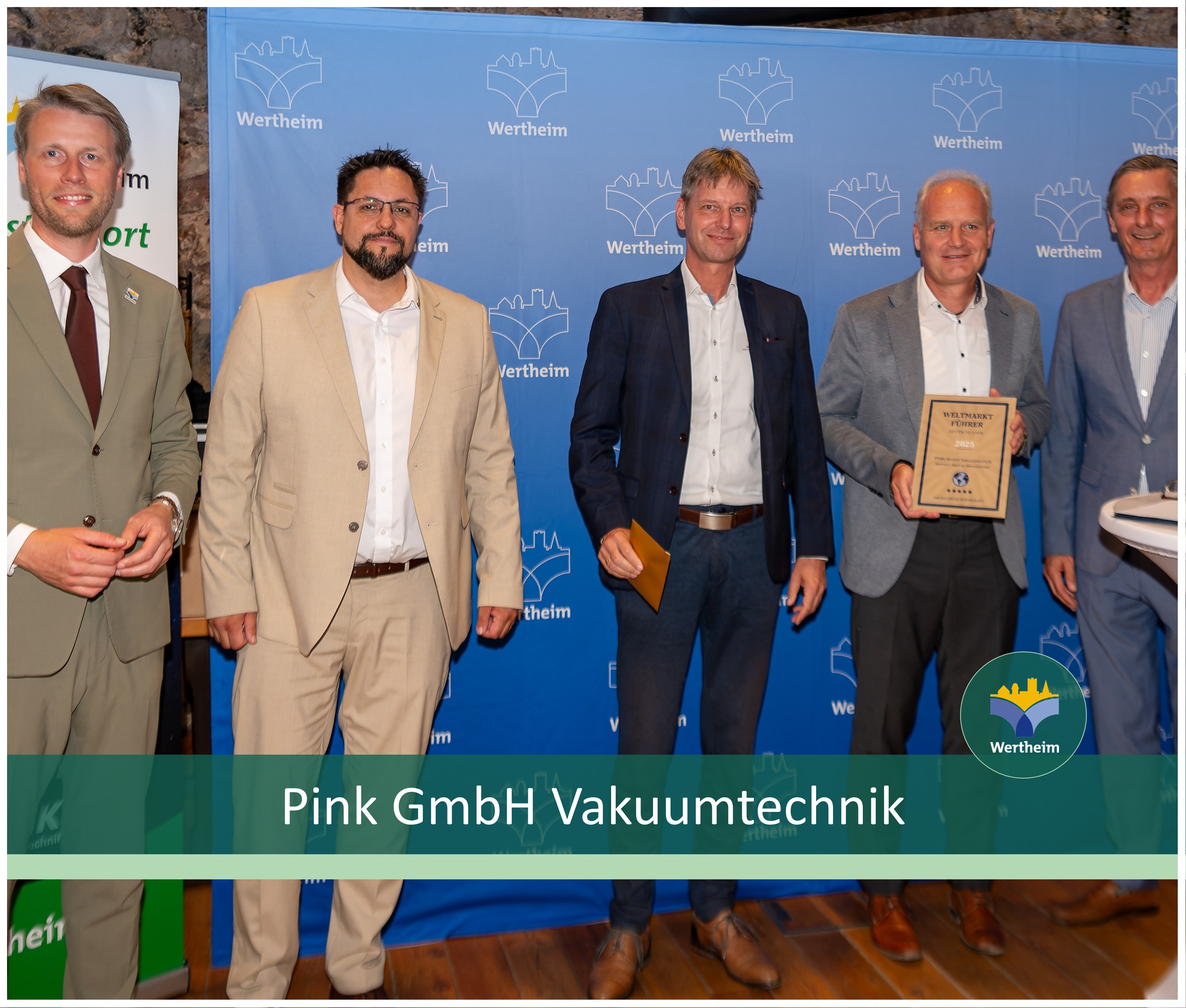 Aus Anlass der Aufnahme der Pink GmbH Thermosysteme ins Lexikon der deutschen Weltmarktführer fand eine Feierstunde zur Auszeichnung der nunmehr zwölf Weltmarktführer am 30. Juni 2025 auf der Wertheimer Burg statt. Oberbürgermeister Markus Herrera Torrez und Michael Oelmann, Herausgeber des Verlags „Die Deutsche Wirtschaft“ und damit des Lexikons der deutschen Weltmarktführer, zeichneten die Vertreter der zwölf Unternehmen mit dem Siegel „Weltmarktführer 2025“ aus. Die Veranstaltung brachte Persönlichkeiten aus Wirtschaft, Politik und Gesellschaft zusammen und unterstrich die herausragende Bedeutung der Wertheimer Unternehmen für die Region und darüber hinaus. Besonders gewürdigt wurden Innovationskraft, Standorttreue und generationsübergreifende Unternehmensführung. Die Berichterstattung zur Feierstunde (PDF | 949 KB) finden Sie hier. Auch der Fernsehsender L-TV hat über die Feierstunde einen Beitrag ausgestrahlt.