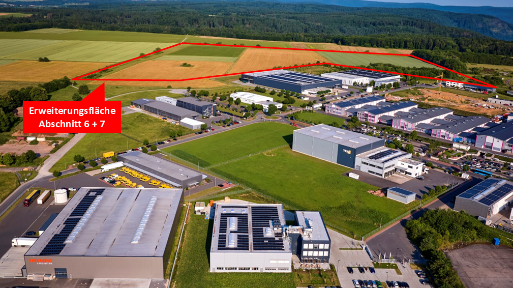 Luftbild Erweiterungsfläche Abschnitte 6 und 7 im Industrie- und Gewerbegebiet Reinhardshof