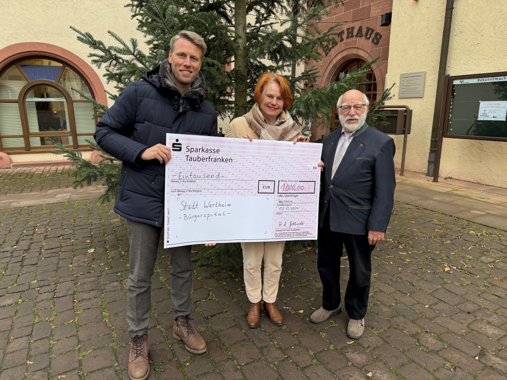 Oberbürgermeister Markus Herrera Torrez war begeistert. Er habe ja mit manchem gerechnet in der Vorweihnachtszeit, „aber das ist eine großartige Sache“, kommentierte er die 1.000 Euro Spende, die Vorsitzender Herbert Alexander Gebhardt und seine Stellvertreterin Helga Hiller überreichten. Das Geld ist für die Notfallversorgung im neuen Bürgerspital bestimmt.