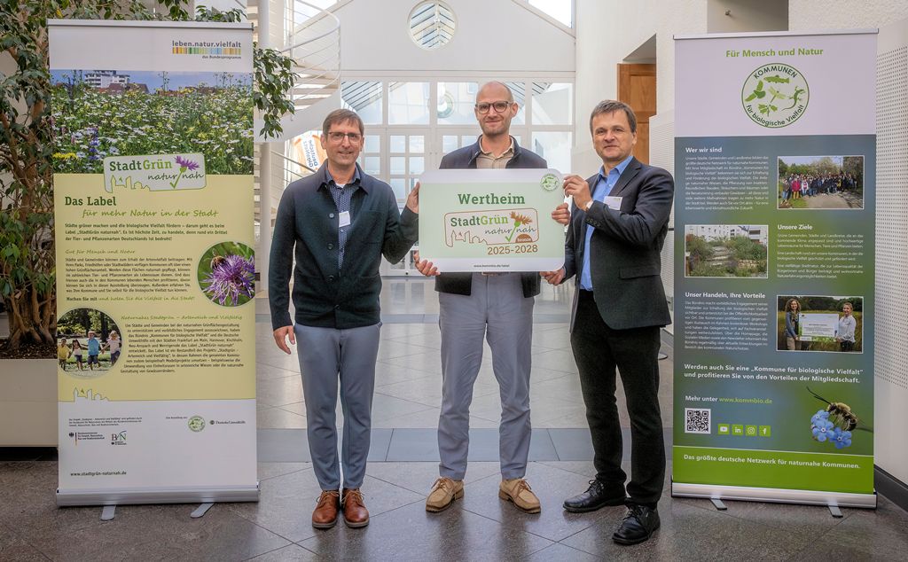 Die Stadt Wertheim wurde erneut mit dem Label „StadtGrün naturnah“ in der Stufe Bronze ausgezeichnet. Die Rezertifizierung würdigt das kontinuierliche Engagement für mehr biologische Vielfalt im öffentlichen Grün. Umweltbeauftragter Simon Valkov nahm die Urkunde bei einer Feierstunde in Kronberg im Taunus entgegen.