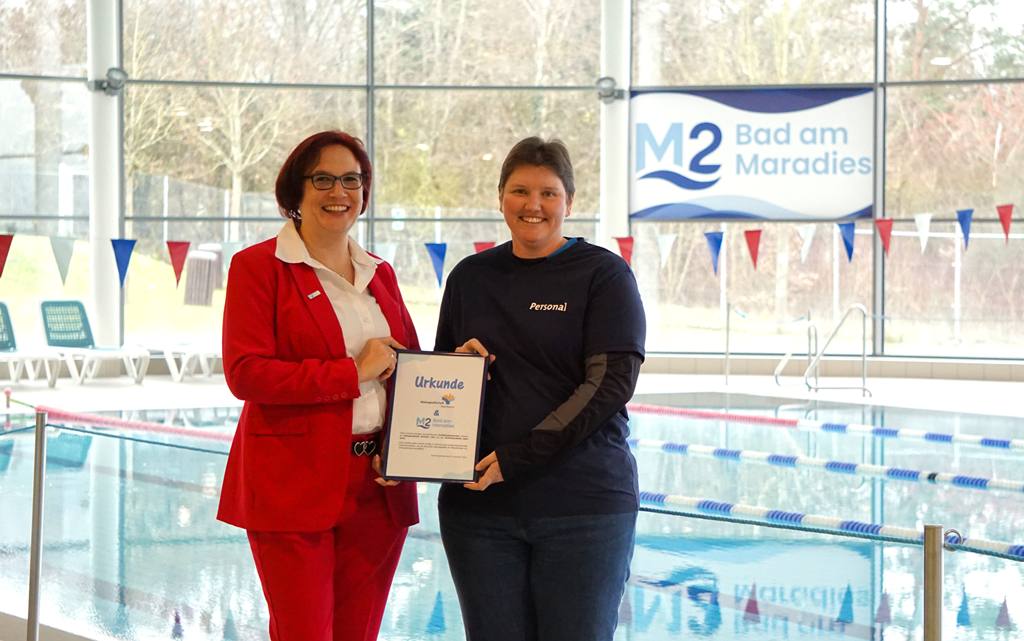 Der neue Ausbildungsverbund zwischen Marktheidenfeld und Wertheim schafft hier eine verlässliche Lösung: Durch die enge Zusammenarbeit können sämtliche Ausbildungsinhalte regelkonform, praxisnah und standortübergreifend vermittelt werden. So hat das M2-Bad am Maradies das Alleinstellungsmerkmal in der Ausbildungskooperation mit seinem Sauna- und Thermenbereich. Die Wertheimer Bäder ergänzen dies durch ihre besonderen technischen Anlagen und durch ein Freibad mit Sprungtürmen.
