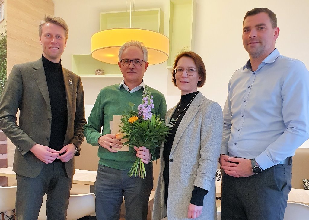 Mit dem langjährigen Geschäftsführer Edgar Beuchert habe Achim Kempf erfolgreich Hand in Hand gearbeitet. Und in der Zeit des Übergangs zu Geschäftsführer Thomas Müller sei Kempf ein unverzichtbarer Stabilitätsanker gewesen. Mit dem Dank für die jahrzehntelange Arbeit verband der OB alle guten Wünsche für den Ruhestand. Als Nachfolgerin ab 1. April hat der scheidende Mitarbeiter in den letzten Wochen Katja Schäfer eingearbeitet. Sie ist seit 1. Januar bei Steg und Wohnbau als Syndikusrechtsanwältin beschäftigt.