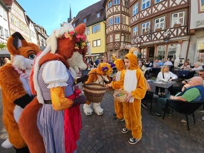 Ein besonderer Höhepunkt am Samstag ist der „Fursuit-Walk“ um 15 Uhr auf dem Marktplatz: In fantasievollen, freundlich gestalteten Tierkostümen zieht eine bunte Parade durch die Innenstadt und sorgt für staunende Gesichter bei Groß und Klein. Ebenfalls auf dem Marktplatz führen Kinder des Waldkindergartens an beiden Tagen fröhliche Hasentänze auf und bringen österliche Stimmung ins Zentrum der Stadt.