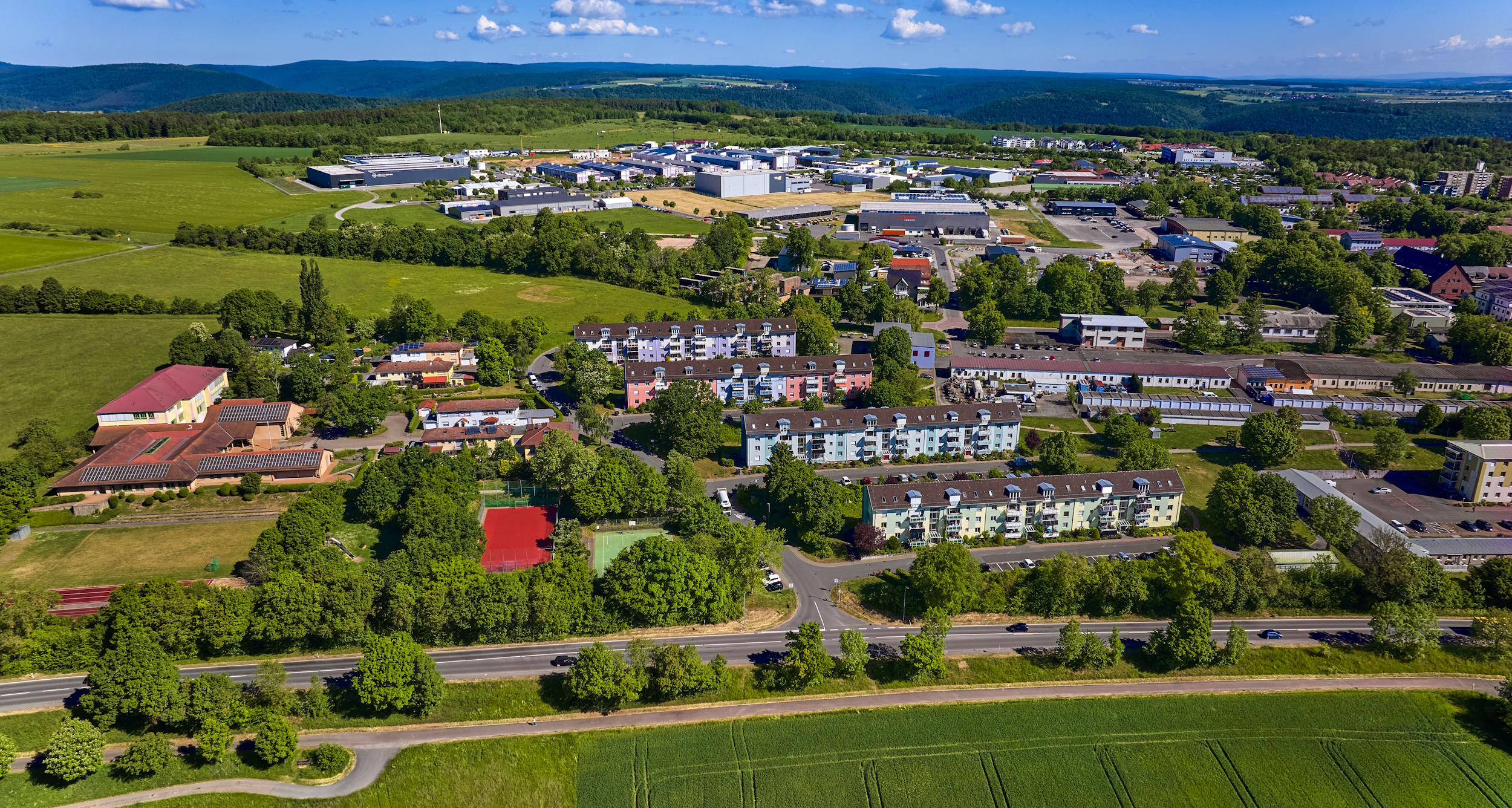 Das Gewerbegebiet „Obere Grüben“ schließt sich am Rande der Ortschaft an und verläuft bis an die Autobahn A3. Eine Brückenverbindung führt von dort aus direkt ins benachbarte Gewerbegebiet „Almosenberg“ mit dem Wertheim Village und weiteren namhaften Ansiedlungen.