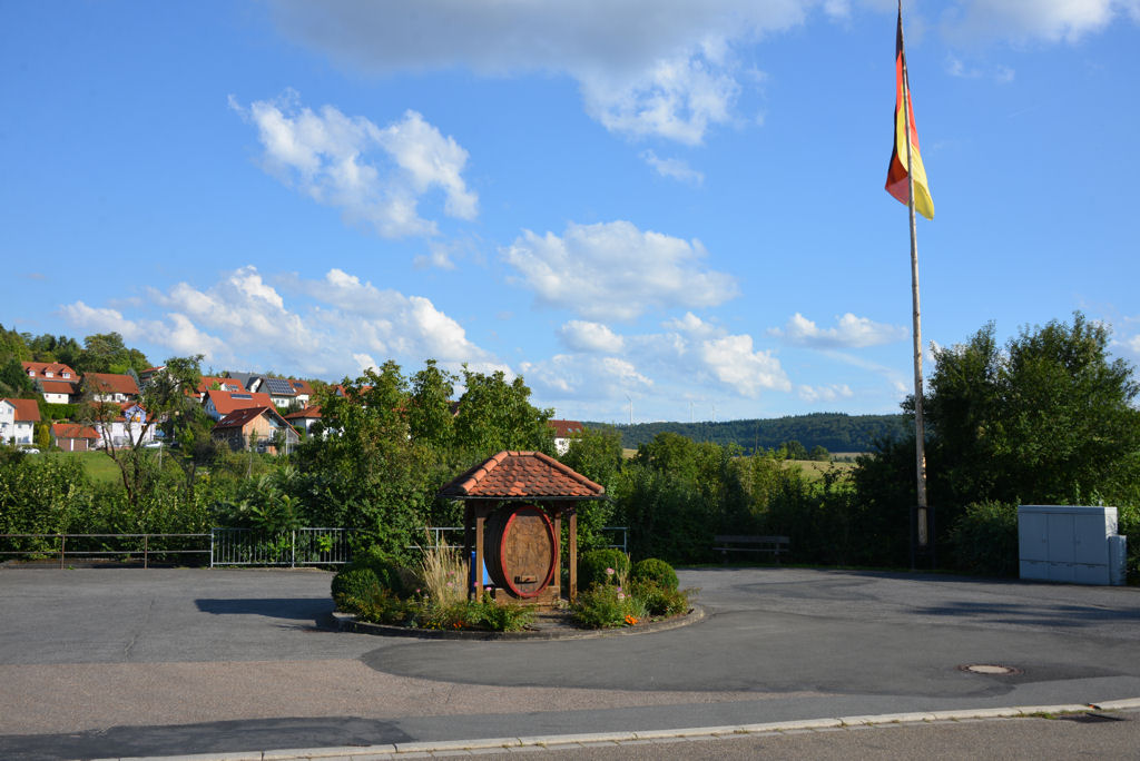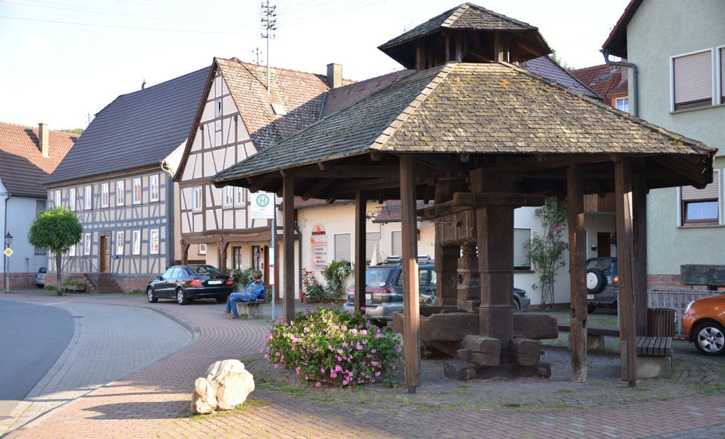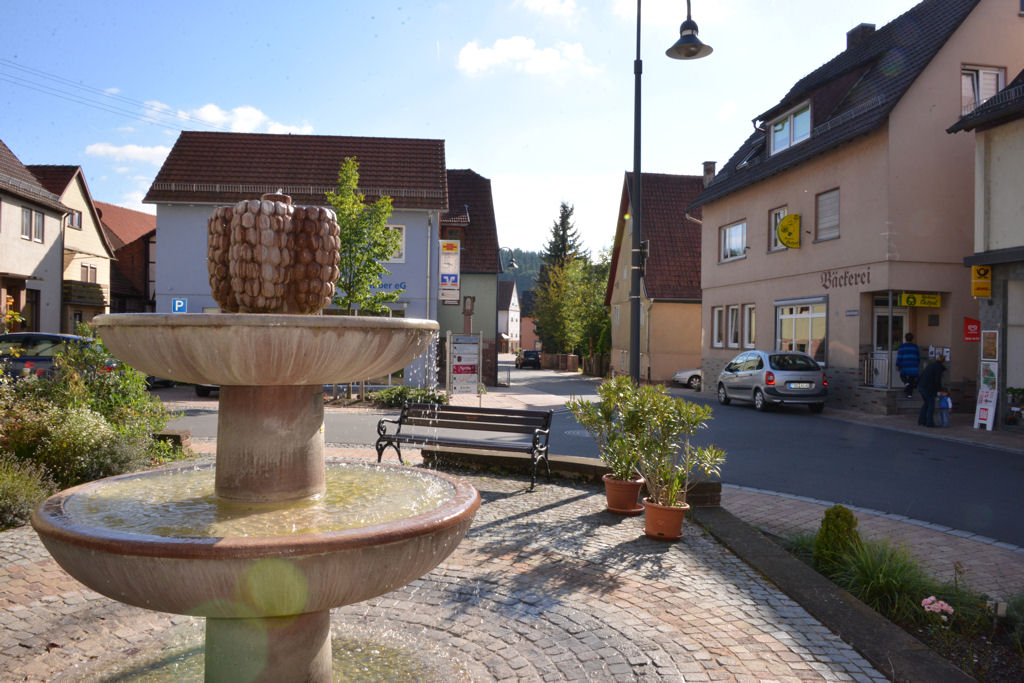 Ortsdurchfahrt Reicholzheim mit Brunnen aus Sandstein