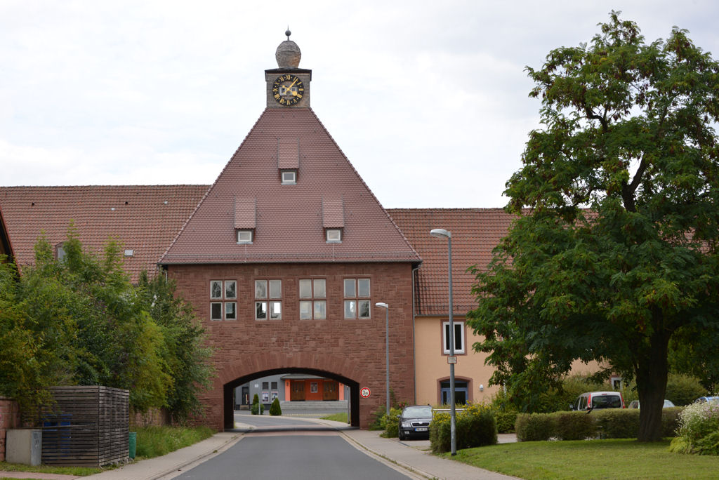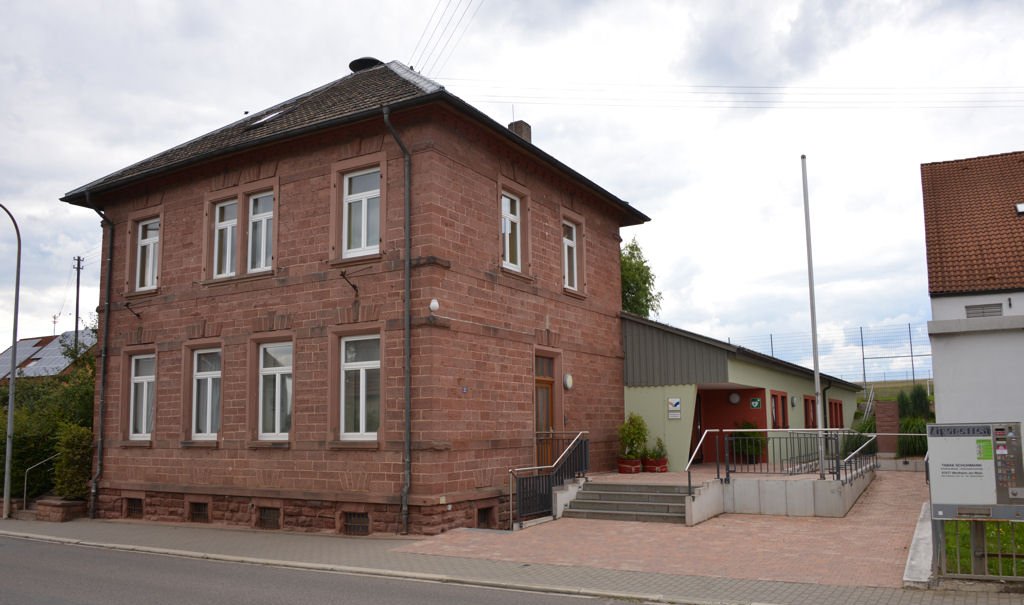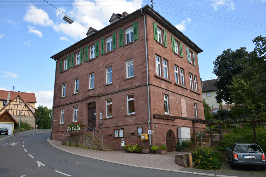 Die Mehrzweckhalle im Stadtteil Vockenrot ist in einem roten Sandsteingebäude untergebracht.