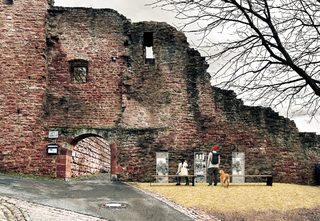 April 1, 2025 marks the 80th anniversary of the end of the Second World War in Wertheim. To mark this date, a memorial and place of remembrance of the events of that time was established. The square below the castle at Hirschtor was upgraded with a modified surface, on which three steel-framed, 1.80-metre-high and 60-centimetre-wide text steles were erected.