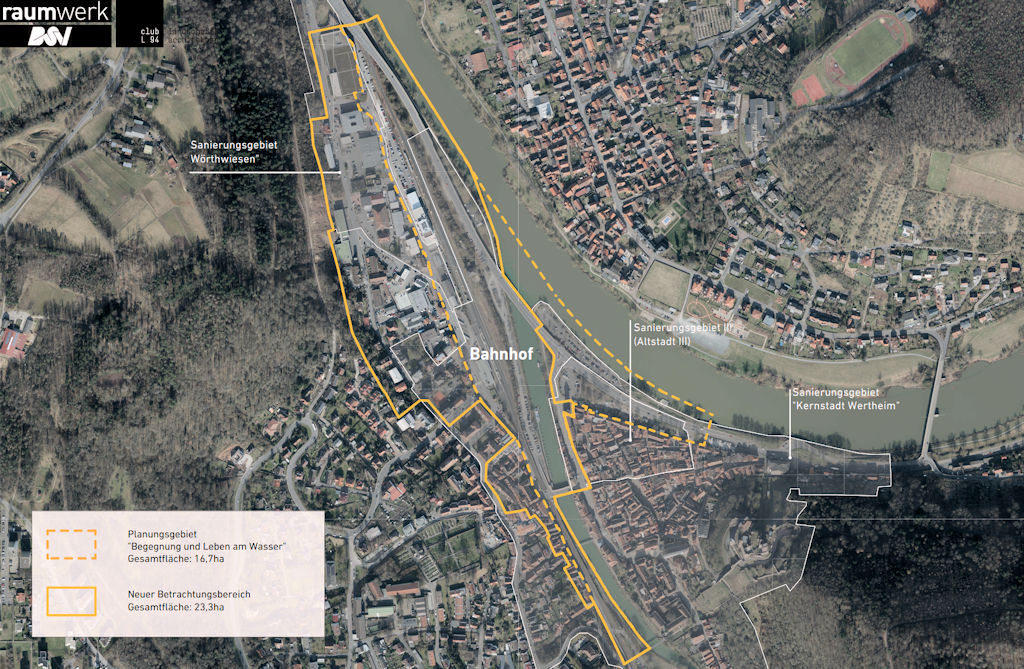 So umfasst die Planung neben den Uferbereichen von Tauber und Main nun auch den Bereich zwischen Bahnhofs-, Weingärtner- und Bismarckstraße, erläuterte Fachbereichsleiter Armin Dattler. Das Gelände rund um den Bahnhof stelle einen zentralen Bereich der Innenstadt dar. Er weise erhebliche städtebauliche Mängel auf, zeichne sich aber gleichzeitig durch bedeutende Potenziale für die weitere Entwicklung der Innenstadt aus. Bisher war das Gebiet im Rahmenplan „Begegnung und Leben am Wasser“ nicht vollständig enthalten. Mit einer entsprechenden Veränderung der Abgrenzung könnten künftig mehr private Eigentümer an der Städtebauförderung teilhaben.