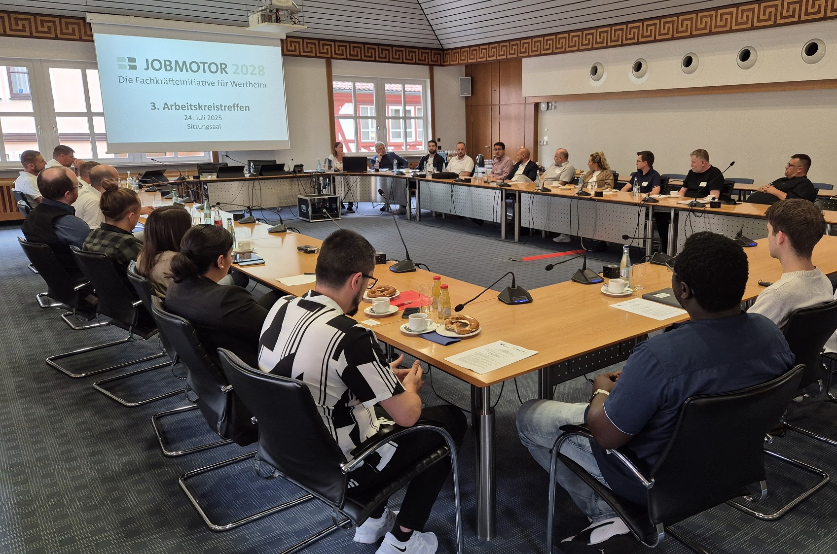 Die Initiative wurde im Sommer 2024 mit der Vorstellung gestartet, dass die Priorität auf der baldigen Anwerbung ausländischen Fachkräfte für Wertheim liegen müsse. Die Ergebnisse einer im August und September durchgeführten Bedarfsabfrage haben jedoch gezeigt, dass die veränderten konjunkturellen Rahmenbedingungen bei den Unternehmen zu einer eher abwartenden Haltung führten. Gleichzeitig ist deutlich geworden, dass großer Bedarf an einem intensiven Austausch über die Herausforderungen und Chancen der Gewinnung und Bindung von Fachkräften bestehe. Darauf haben wir mit der Einsetzung eines Arbeitskreises reagiert.